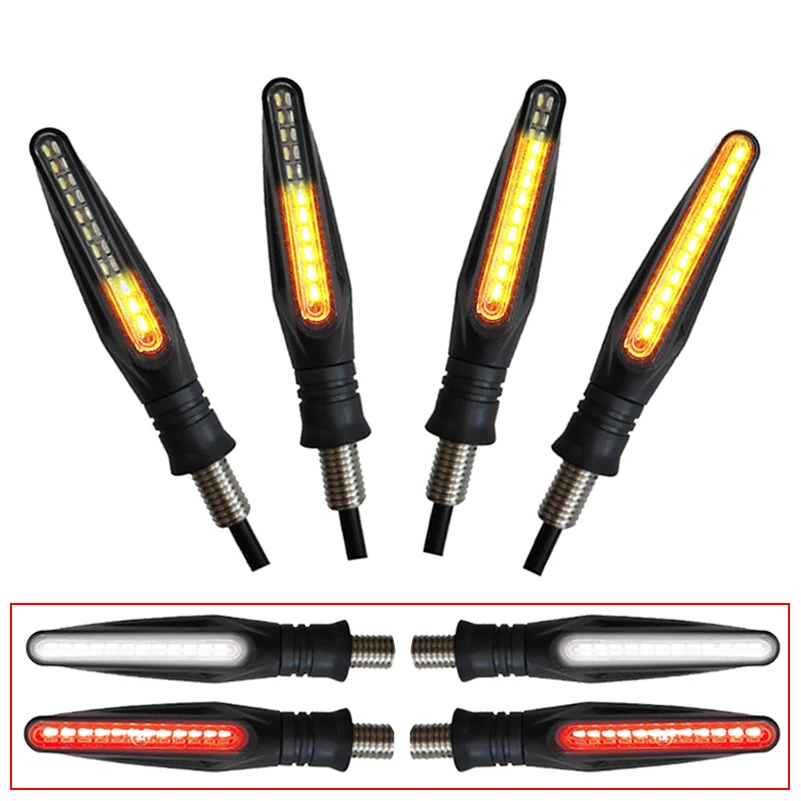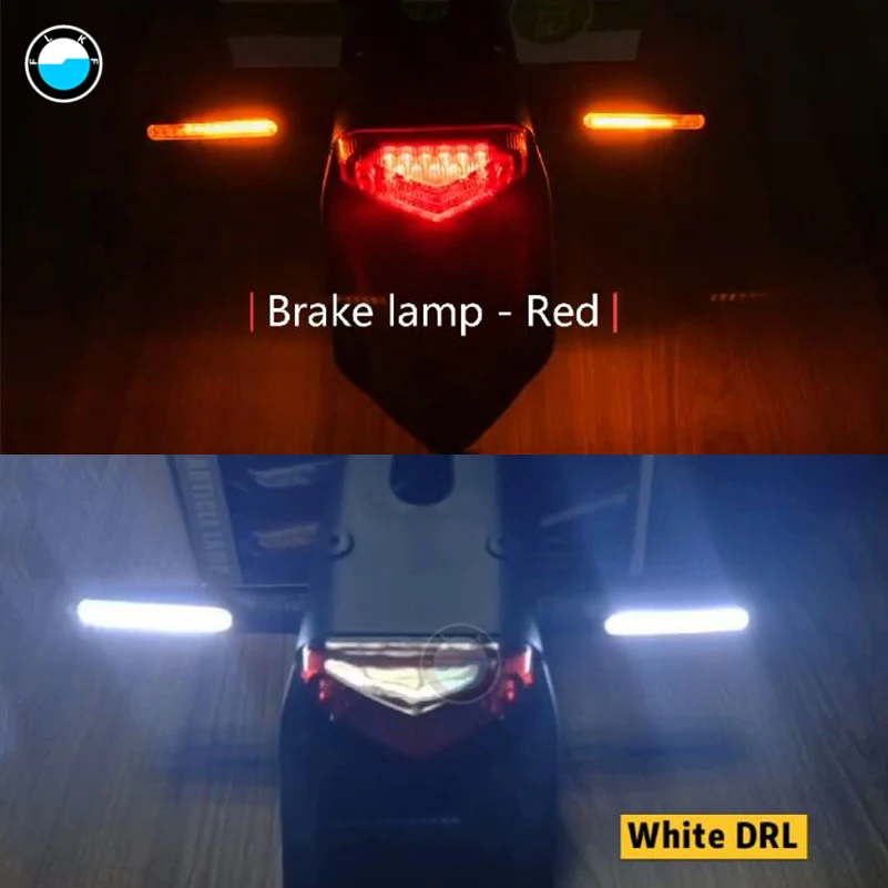 Motorcycle Turn Signals 12 LED Light Flowing Water Blinker Flashing Indicator redTail Stop Signal White daytime running lights.