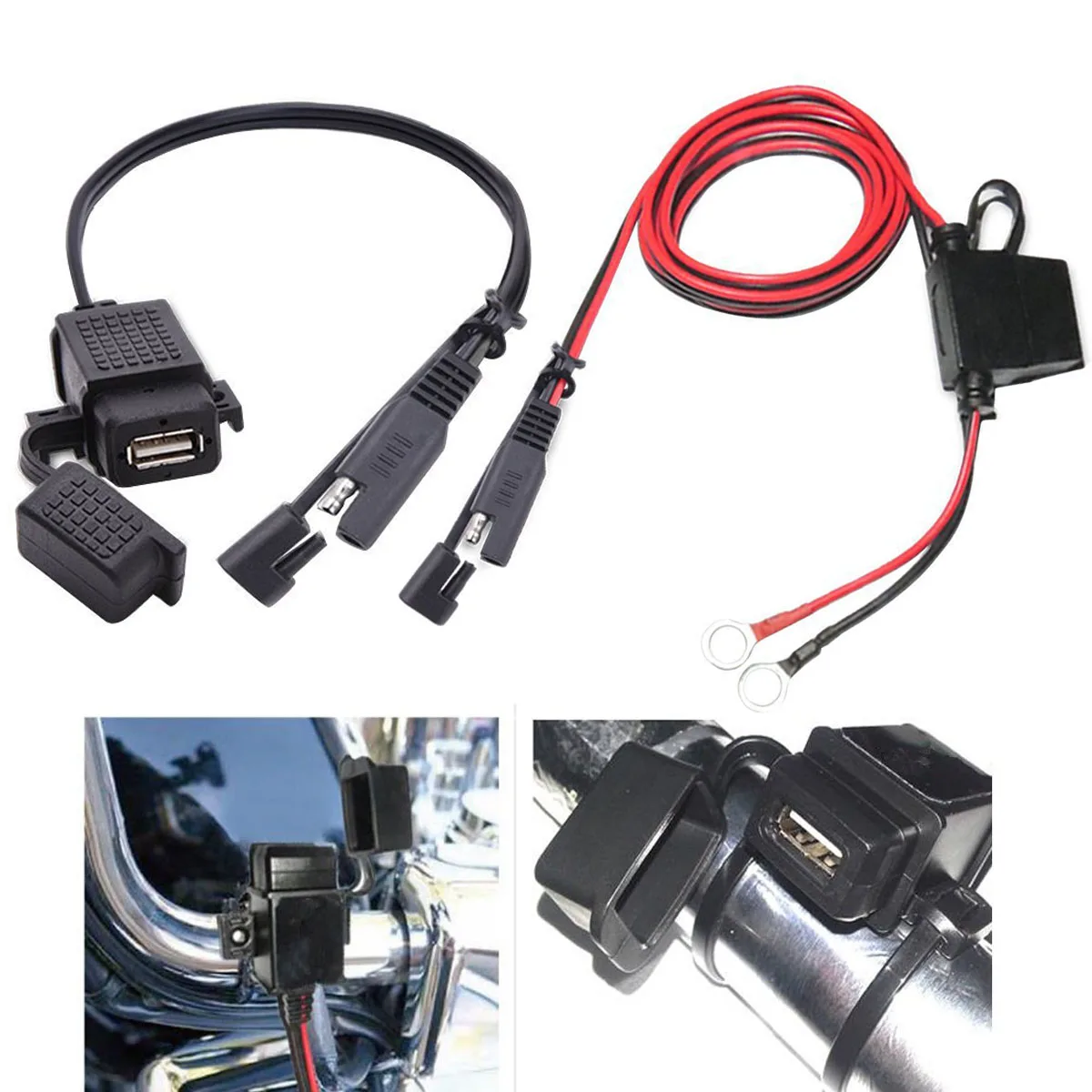 Motorcycle 5V 2.1A Waterproof USB Charger Kit SAE to USB Adapter+Extension Harness Motorcycle Electronics Universal Accessories