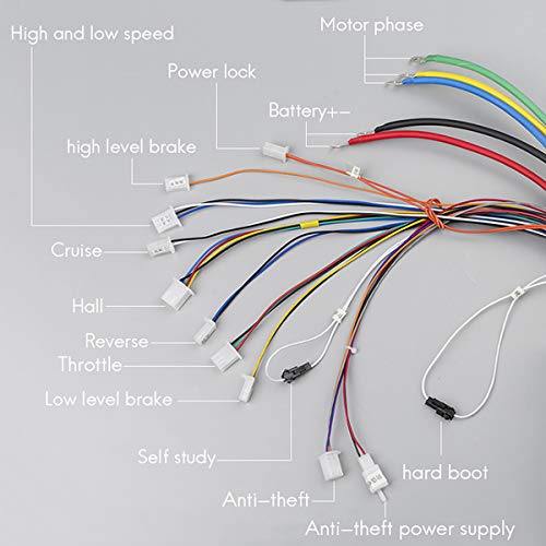 ☑ 【Controller BLDC】 Tensione 48-72 V, Proteggi Vol 42 V, Potenza 3000 W, 24 Mosfet, Corrente 50 A, Grado di fase: 120 °, Il controller intelligente può funzionare con sensore Hall e senza motore Hall, Regolatore di velocità motore brushless, E-Brake, 3 velocità (bassa media alta velocità), funzioni inverse, spia luminosa e funzioni blocco alimentazione.