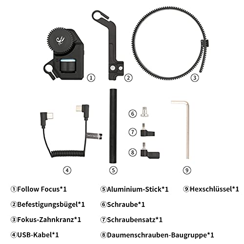 Il sistema di follow focus è controllato da un cavo, che è collegato al gimbal tramite l'interfaccia di tipo C sul gimbal per pilotare l'obiettivo della fotocamera.
