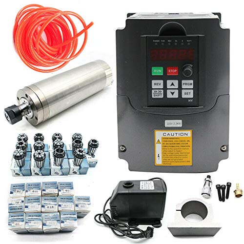 VFD, kit motore del mandrino CNC, con 220 V 2,2 KW 4 cuscinetti 400 Hz 24000 rpm raffreddato ad acqua, motore mandrino e pompa dell'acqua da 220 V 75 W e 13 pinze a molla di precisione ER20