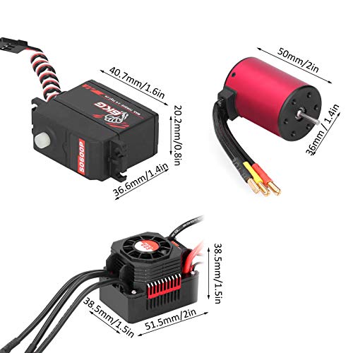 Set motore RC 1/10, ESC Servo 3650 4500 KV brushless motore con vaschetta di raffreddamento + 60A ESC + 6 kg Servo in metallo (S0600M) + braccio 25T