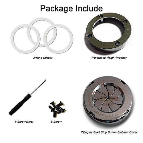 Spingere il coperchio del pulsante di avvio Adatto per auto con avviamento a una chiave al 90% e adatto anche per alcune moto (è possibile installare il pulsante di dimensioni inferiori a 1,18 pollici). Prima di ordinare, assicurarsi della dimensione del pulsante di avvio e arresto.