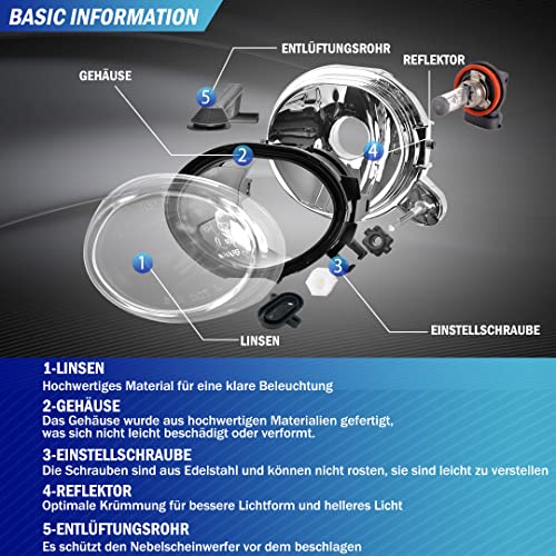 Fit OEM esatto: i fendinebbia funzionano come quelli originali, ma i materiali aggiornati adottati possono garantire un'illuminazione più stabile e più lunga. Progettati per montarli sul tuo veicolo senza bisogno di modifiche.