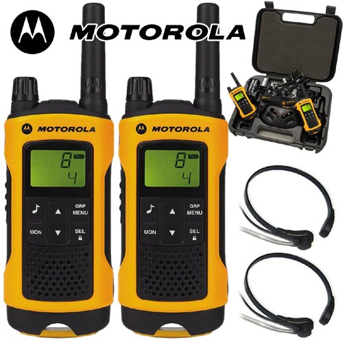 Motorola TLKR T80 Extreme - Walkie Talkie radio bidirezionale, 10 km, kit da viaggio con 2 ricetrasmittenti e 2 microfoni da collo Comtech CM-215TH PTT/VOX, per sci e go kart