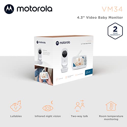 Motorola Nursery VM34 Baby Monitor con Telecamera, Schermo a Colori da 4.3 Pollici, Visione Notturna a Infrarossi, Ninne Nanne