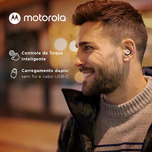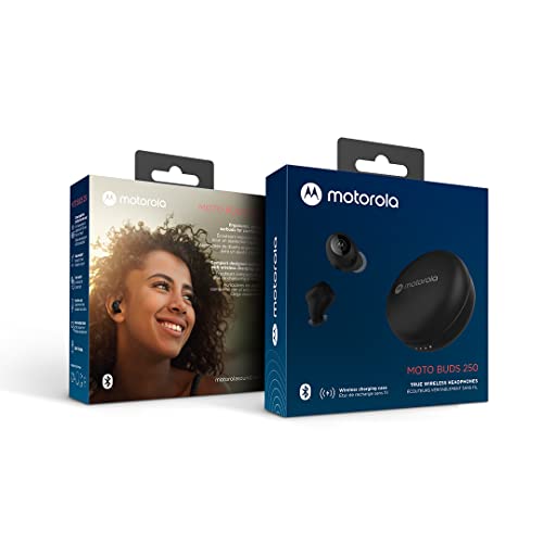 Motorola Sound Auricolari senza fili Moto Buds 250 - In-ear - Tecnologia Qi - Resistente all'acqua e al sudore - Controllo touch e vocale - 18 ore di riproduzione - Nero, S/M/L