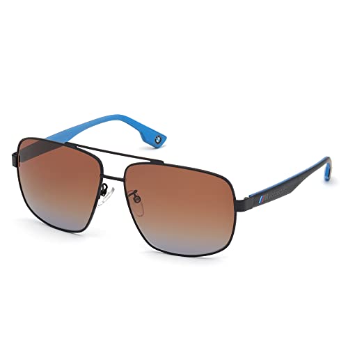 BMW MOTORSPORT - Occhiali da sole da uomo BS0002 - forma a goccia squadrata, colore nero opaco, colore lente marrone