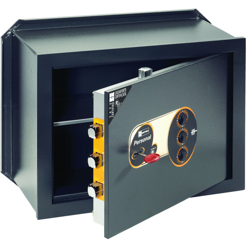 CASSAFORTE MOTTURA A CHIAVE + COMBINAZIONE ART.2120 CM.P20xL35xH23 Frontale in acciaio, spessore sportello mm. 10, spessore cornice mm. 12, catenacci in acciaio, serratura protetta con chiave indipendente + 3 combinazioni meccaniche, possibilità di chiusura solo a sportello chiuso, speciale verniciatura antigraffio. 2 CATENACCI Misure: cm. P20xL35xH23