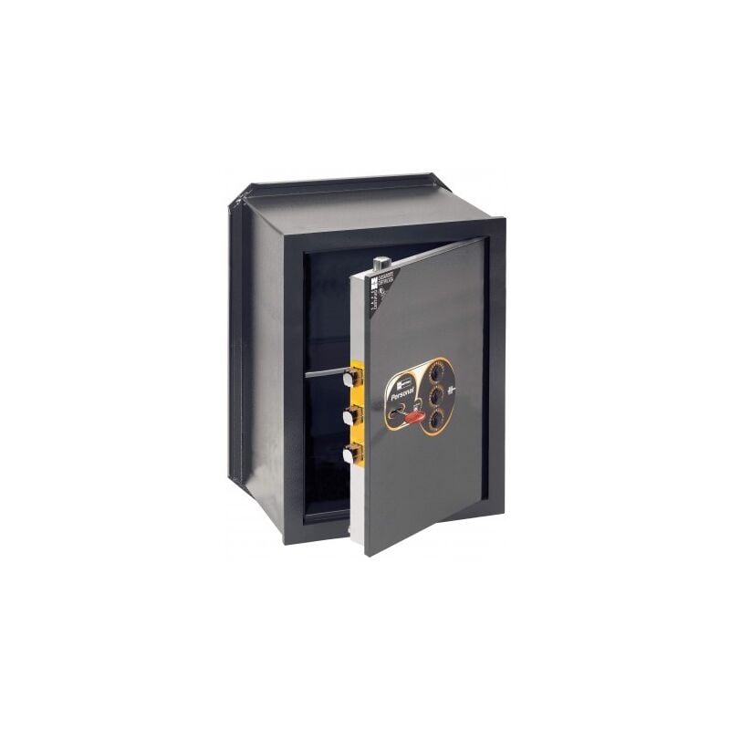 Modello ad incasso con chiusura a chiave + combinazione meccanica. CASSAFORTE CERTIFICATA SECONDO NORMA UNI EN 14450, GRADO S2, DA ICIM Chiavistelli sagomati Spessore portello mm 10;