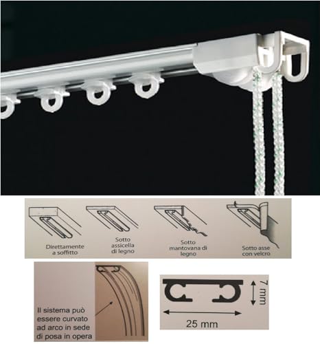 MOTTURA Profilo Binario ultrapiatto Professionale Scorritenda Bastone Surf 311 (200cm Strappo Apert. Centrale)