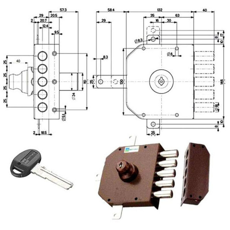 Mottura Serratura Sicurezza Quintupla Sx Pompa 30642