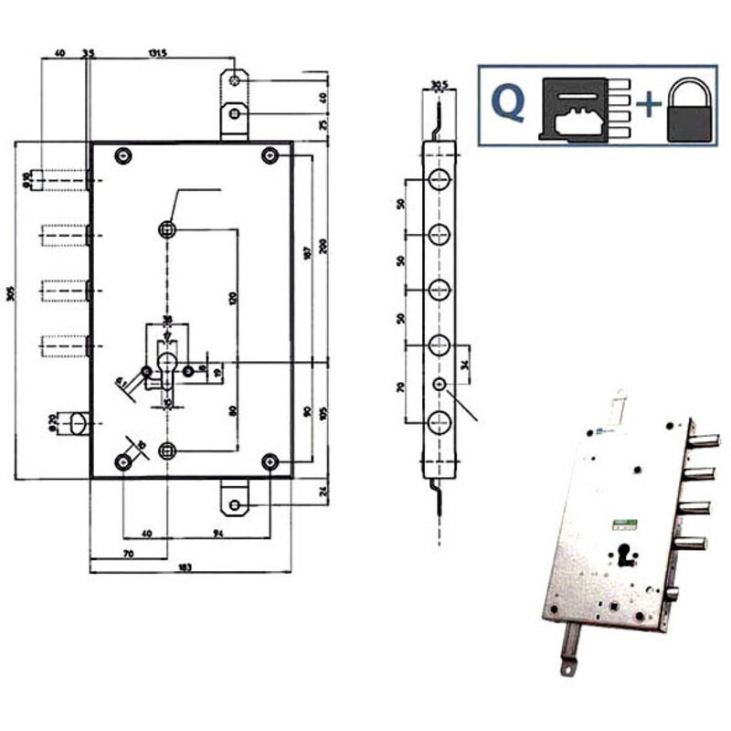 Mottura Serratura Sicurezza Triplice Sx Ya Scr 110 85461