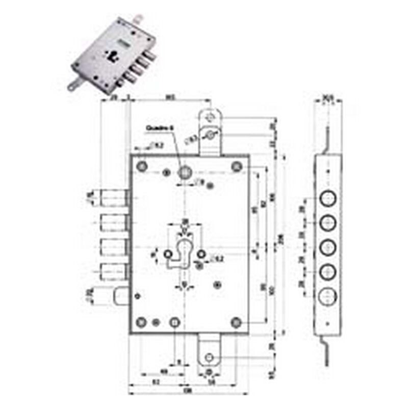 Scatola mm.136x206h. in acciaio con rivestimento in zinco, catenacci e scrocco in acciaio nichelato, 2 mandate, quadro maniglia passante - cilindro e aste non compresi