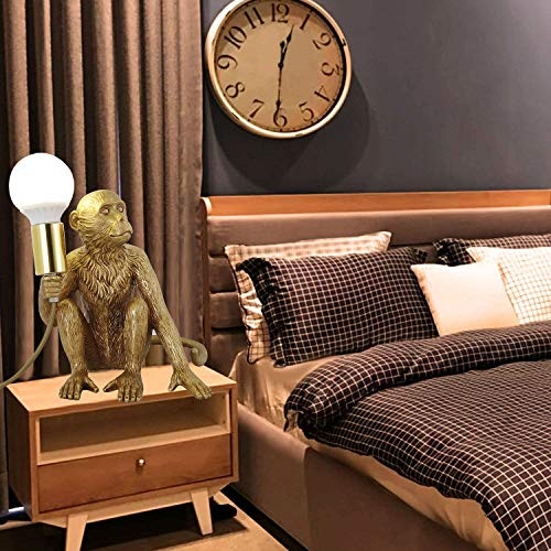 MOUFIER Lampada da comodino a forma di scimmia, lampada da scrivania moderna, design unico in resina con attacco E27, lampada a forma di scimmia seduta, per soggiorno, camera da letto, ufficio