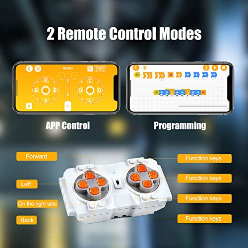 Funzione programmabile: è possibile controllare il camion technik tramite telecomando o il telefono cellulare, è necessario scaricare solo l'app e collegare i blocchi di serraggio del camion tramite Bluetooth. Supporta 2 modalità di controllo remoto: modalità di controllo remoto e funzione di programmazione. Ogni modalità è facile e facile da usare. Goditi il divertimento di tutte le opzioni di controllo.