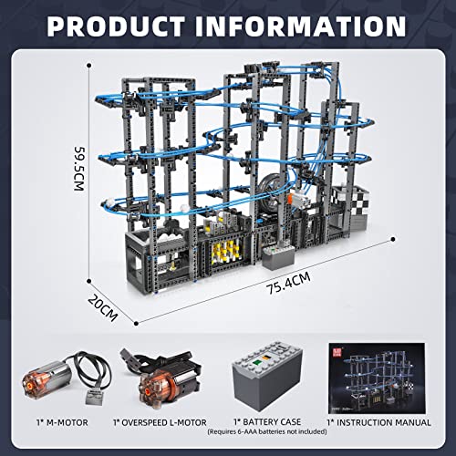 Mould King 26002 Pista di Biglie, 2438 Pezzi Multicolore Pista di Marmo Giocattolo STEM, Set di Costruzioni, Technik Montagne Russe Set da costruzione con Elementi Traccia e Palla di Pietra
