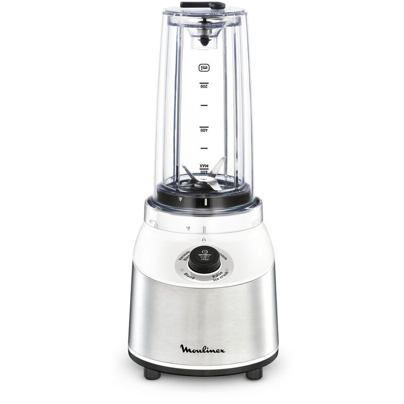 Il frullatore sottovuoto Moulinex LM180110 Freshboost conserva fino a 3 volte il potere antiossidante di frutta e verdura. Dotato di 4 funzioni tra cui Miscelazione / Sottovuoto / Miscelazione e sottovuoto / Ghiaccio tritato. L'LM18011 beneficia della tecnologia NutriKeep: l'aria viene letteralmente evacuata all'esterno del pallone prima della miscelazione per evitare l'ossidazione del cibo. Tipo di prodotto: Frullatore sottovuoto. Colore bianco. Materiale della ciotola: plastica. Capacità? dimensione della ciotola: 0,6 L. Potenza: 800 W. Numero di programmi: 4. Numero di velocità: 4. Parti lavabili in lavastoviglie: Sì. Funzione batteria ghiaccio: sì. Pulse: Sì. Altri: 1 zucca nomade. Profondità: 15,1 cm. Larghezza: 19,3 cm. Altezza: 36,1 cm. Peso: 2,69 kg.