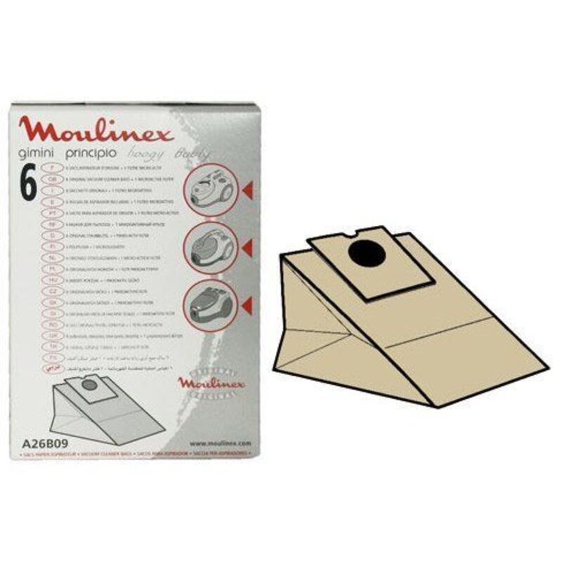 Lotto di 6 sacchetti + filtro - A26B09 - [ASPIRAPOLVERE MOULINEX:] BOOGY, BOOLY, CEG141, CEG141(0), CEG14B, CEG151, CEG151(0), CEG152, CEG152(0), CEG153, CEG153(0), CEG155, CEG15A, CEG15C, CEG1SC, CEG1T1, CEG251, CEG251(0), CEG253, CEG253(0), CEGA47, CEGA4B, CEGA4W, CEGA51(0), CEGA52, CEGA52(0), CEGA53, CEGA54, CEGAA3, CEGC51, CEGC51(0), CEGCC3, CEGD41, CEGD44, CEGD45, CEGDA3, CEP141, CEP142, CEP144, CEP1S4, CEP1T1, CEP241, CEP341, CEP342, CEP344, CEP34W, CEP441, CER471, GIMINI, MO101301, MO101301/4Q0, MO10134A/4Q0, MO1013FA/4Q0, MO1013X1/4Q0, MO102101, MO102101/4Q0, MO102141/4Q0, MO102182/4Q0, MO1021T1/4Q0, MO1021X1/4Q0