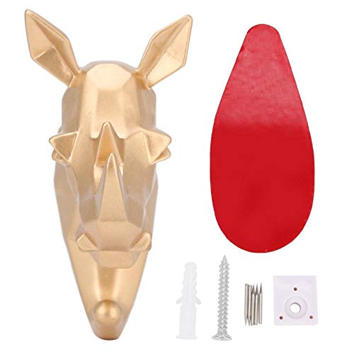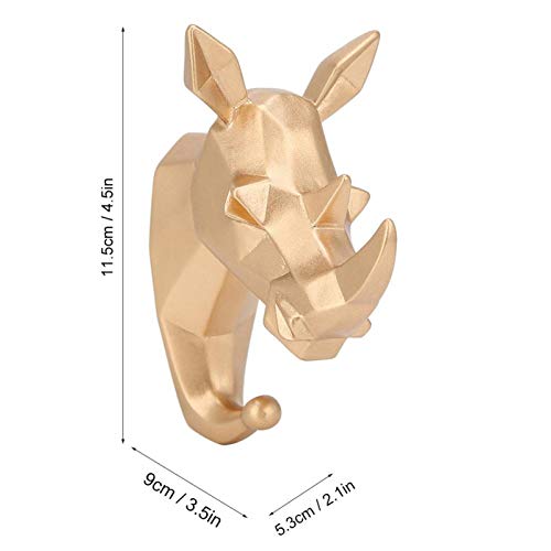 MOUMOUTEN Gancio a Parete Singola, Gancio Dorato per Appendere a Parete in Resina a Forma di Animale Gancio per Asciugamani con Kit di Viti e Adesivo(Rhino)