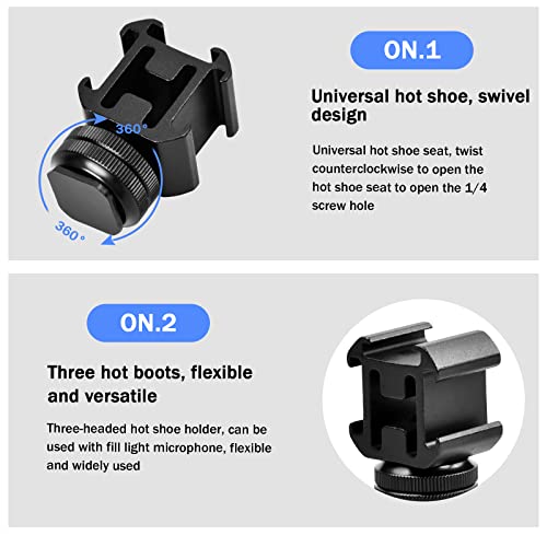 【Ampia applicazione】 Questi adattatori per montaggio su slitta per fotocamera sono leggeri e facili da trasportare. Comodo per trasportare l'attrezzatura fotografica. Ricevitori flash e microfonici compatibili con hot shoe standard di Canon, Nikon, unità flash Olympus e registratori zoom. Il supporto per slitta a contatto caldo a 1/4 può essere utilizzato per qualsiasi ripresa versatile come microfilm, registrazioni di trasmissioni, riunioni di famiglia, presentazioni pubbliche e altro ancora.