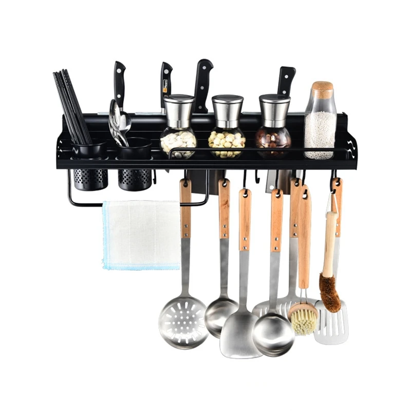 SZS Hot Wall Mount Black Kitchen Storage Rack Shelf Kitchenware Cutlery Holder Organizer