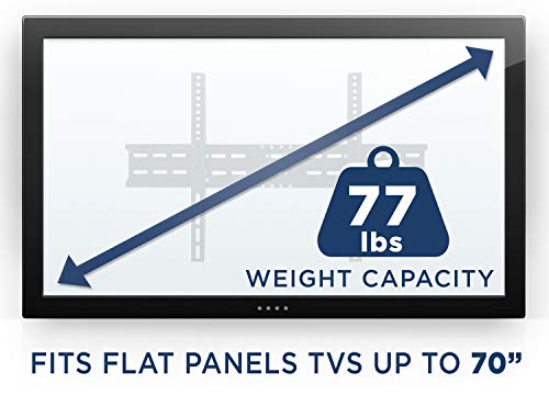 TV A BASSO PROFILO: la staffa di montaggio a parete per TV inclinabile a basso profilo si adatta a quasi tutte le marche di schermi televisivi di grandi dimensioni 37 38 42 50 55 58 60 65 70 pollici di dimensioni, con un peso massimo di supporto di 77 libbre. Si inclina di 5 gradi verso l'alto o di 10 gradi verso il basso