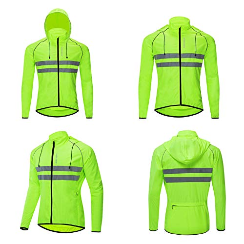 GRTE Mountain Cycling Jacket Mens Lightweight Long Sleeve Top with Hood Windproof Water Reflective Windbreaker Hoody Motorcycle Jerseys Running Road Riding And Fishing Coats,Verde,M