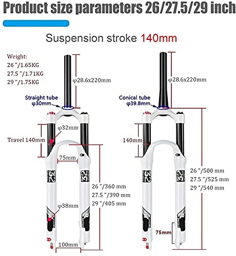 Mountain Bike Sospensione Air Front Bith Fork 26 27.5 29 Pollici, Lega di Magnesio 1-1/8"Forcella Dritta MTB Bicicletta Forcella Anteriore per Bicicletta Viaggio Primavera 140 Mm,Wire controlb,29inch