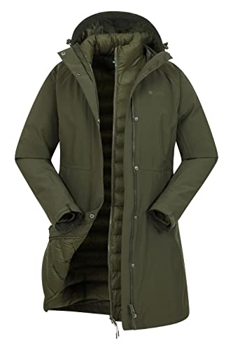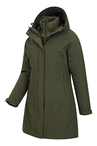 Mountain Warehouse Alaskan Giacca A Vento Impermeabile Da Donna Da Trekking Antivento 3 in 1, Giacca Lunga Impermeabile Da Donna Antipioggia Per Inverno Da Viaggio Kaki Scuro 54