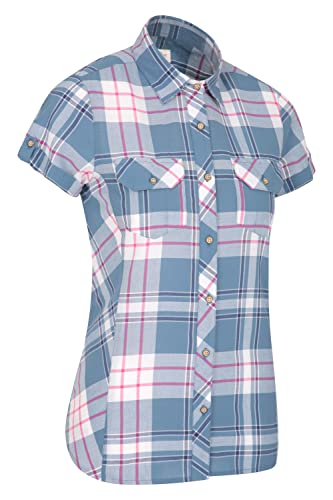 Mountain Warehouse Camicia in Cotone da Donna Holiday - Top a Maniche Corte Donna, Camicia Casual, Camicia Estiva Leggera, Camicetta Traspirante - da Viaggio, Passeggio Blu 48