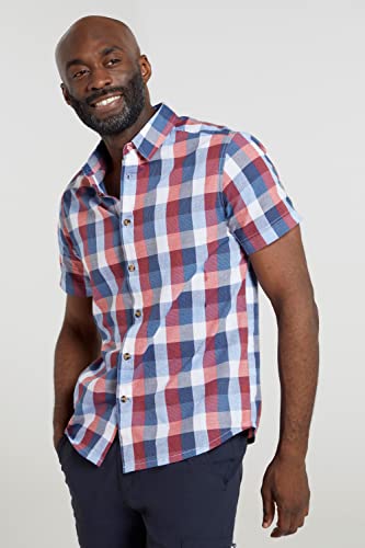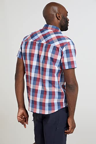 Mountain Warehouse Camicia a Maniche Corte da Uomo Weekender - Camicia Estiva 100% Cotone, Camicia Casual Leggera, Traspirante, Comoda - da Passeggio, Campeggio, Viaggio Rosso XL