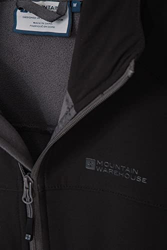 Mountain Warehouse Exodus - Giacca a Vento Uomo in Tessuto Softshell - Traspirante, Resistente alla Pioggia, Rivestimento in Pile Nero L