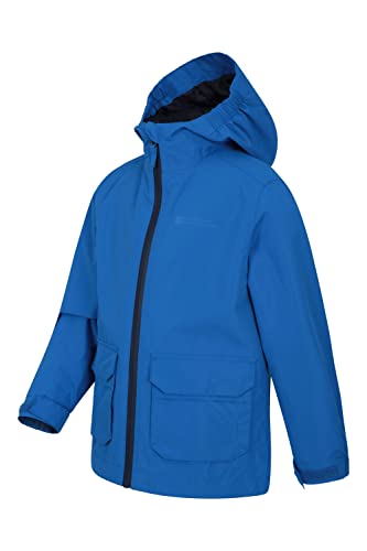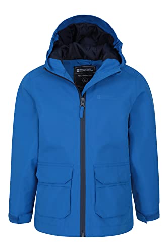 Mountain Warehouse Giacca impermeabile da bambino con tasche a toppa - 3000 mm, cuciture nastrate, impermeabile unisex, foderata in pile - Per passeggiate, campeggio Blu 7-8 anni