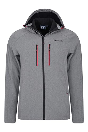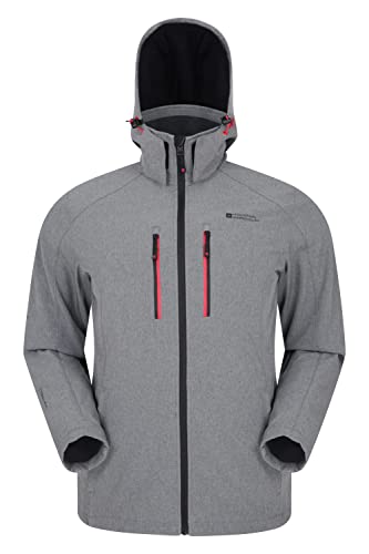 Mountain Warehouse Alto II, giacca in softshell da uomo - Esterno idrorepellente, elasticizzata, fodera in micropile, cappuccio regolabile, tasche con zip - Invernale Grigio M
