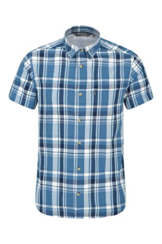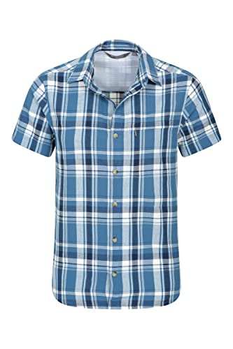 Mountain Warehouse Holiday Camicia da Uomo A Manica Corta Fresca in Cotone Leggero, Camicia Casual da Uomo Montagna con Fodera in Rete, Camicia da Uomo in Mesh Blu Scuro, XXS