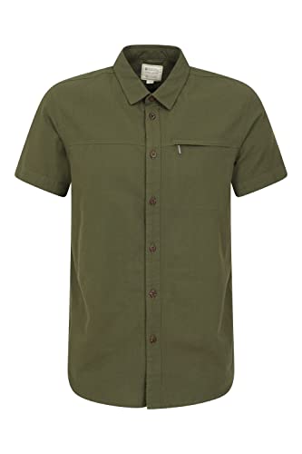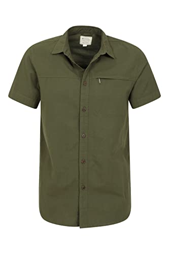 Mountain Warehouse Maglietta con Trama Coconut Slub a Maniche Corte da Uomo - Cotone 100%, Regular Fit, Fodera in Rete, Tasca sul Petto con Zip - per Vacanze e Viaggi Kaki 3XL