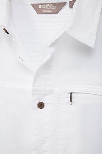 Mountain Warehouse Maglietta con Trama Coconut Slub a Maniche Corte da Uomo - Cotone 100%, Regular Fit, Fodera in Rete, Tasca sul Petto con Zip - per Vacanze e Viaggi Bianco XXL
