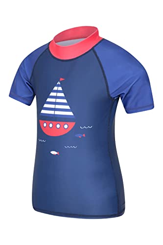 Mountain Warehouse Rash Vest a Maniche Corte per Bambini con Stampa - Rash Guard con Protezione Solare UPF50+, Cuciture Piatte, Maglia ad Asciugatura Rapida - Sottomuta Cobalto 3-4 Anni