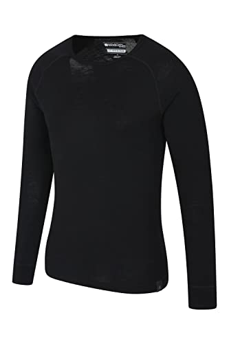 Mountain Warehouse Merino Maglia Termica Uomo A Manica Lunga Antisudore Invernale, Maglia Intima Uomo Elasticizzata per Sport, Maglia Tecnica Uomo da Trekking E Montagna Nero L