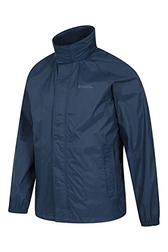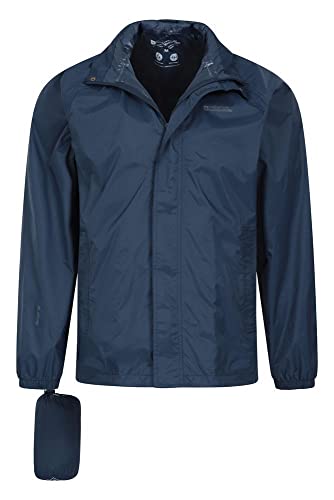 Mountain Warehouse Pakka Giacca Antipioggia da Uomo Leggera - Giacca Resistente all'Acqua in Nylon da Uomo con Cappuccio, Giacca Antipioggia da Viaggio Blu Navy L