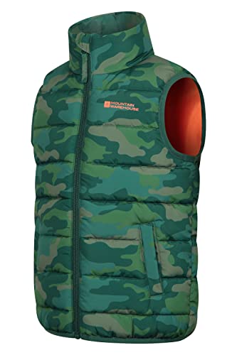 Mountain Warehouse Rocko, gilet imbottito per bambini - impermeabile, imbottito in microfibra, con 2 tasche frontali, caldo - unisex Kaki 5-6 anni