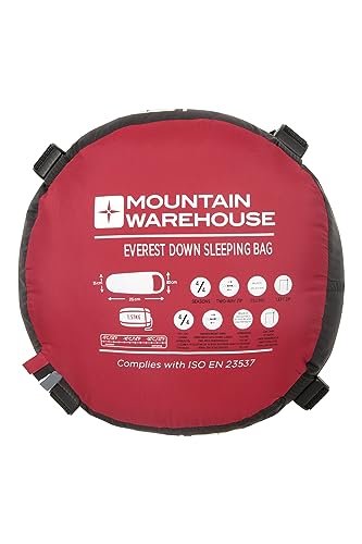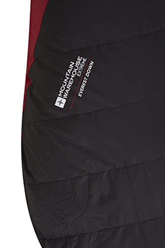 Mountain Warehouse Sacco a Pelo Everest Down Extreme - Sacco a Pelo a Mummia, Sacco a Pelo con Tasca Interna, Cappuccio e Zip bidirezionale - per Viaggi in luoghi Freddi Rosso Taglia Unica