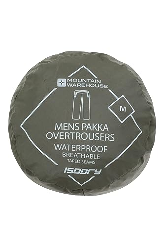 Mountain Warehouse Sovrapantaloni Impermeabili da Uomo Pakka - Pantaloni ad Asciugatura Rapida, Cuciture Nastrate, Aperture sulle Caviglie Regolabili, ripiegabili Kaki XXS
