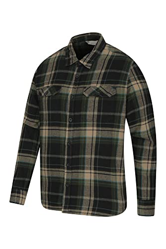 Mountain Warehouse Trace Camicia a Manica Lunga in Flanella Uomo - 100% Cotone, Leggera, Traspirante - Perfetta per Viaggi e Passeggiate Verde Scuro L