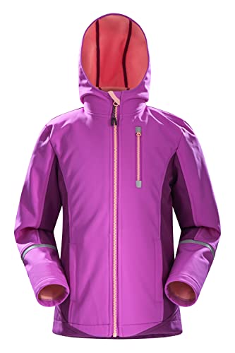 Mountain Warehouse Ultra Kids Softshell - Water Resistant Girls & Boys Jacket, Breathable, Windproof, Inner Pocket, Fleece Lined - Best for Walking, Outdoors, Hiking Viola 11-12 Anni