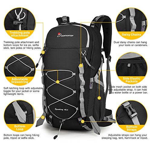 MOUNTAINTOP Zaino Trekking di 40 Litri Zaino da Montagna per Donna e Uomo Zaini da Viaggio Impermeabile con Copertura della Pioggia per Escursionismo Alpinismo Campeggio
