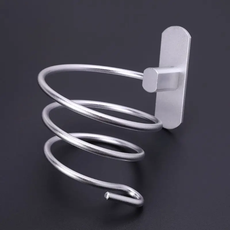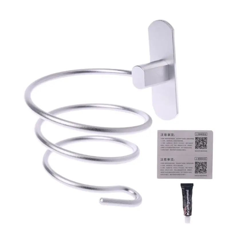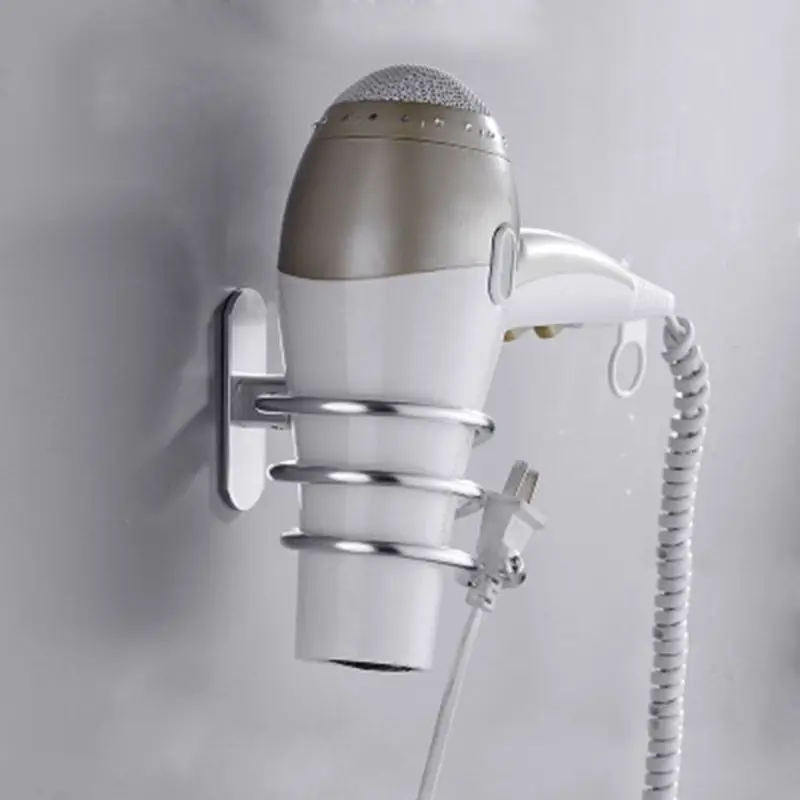 Wall Mounted Hair Dryer Holder Rack Self Adhesive Space Aluminum Bathroom Shelf Storage Stand Nail Free No Drilling 10166