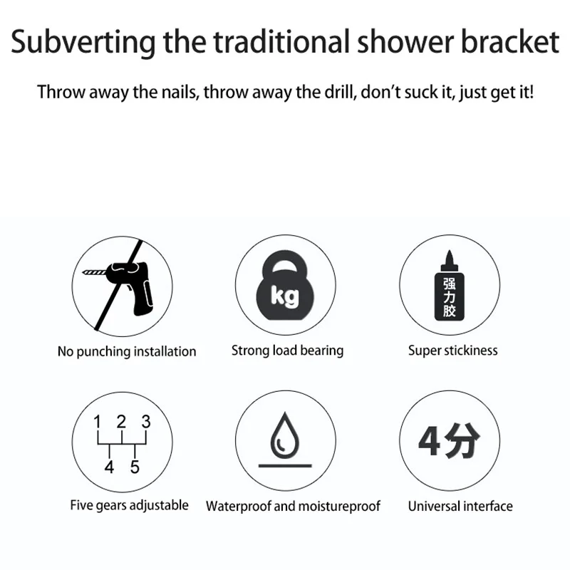 Wall Gel Mounted Shower bracket free punching seat shower head shower hook adjustable nozzle holder Portable Bathroom Accessory
