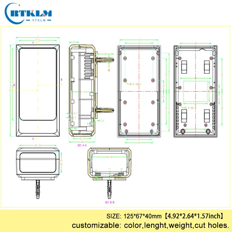 Wall mounting wire connectors plastic enclosure abs plastic project cases DIY custom electronics enclosures box 125*67*40mm